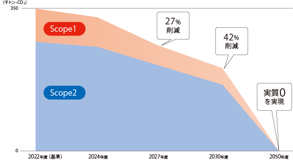2024年度までに2022年度比でCO₂排出量20%削減を達成しています。