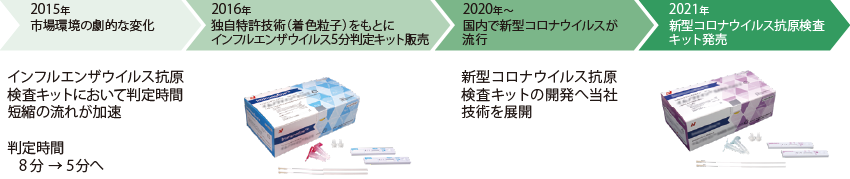 当社は、20年以上にわたり抗原検査キットを研究・開発しています。これまでの経験やノウハウを活かし、検査結果の判定にかかる時間の短縮や操作性の向上を追求しています。